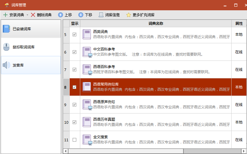 此時在詞典設置的列表中就會顯示您剛添加的詞庫了