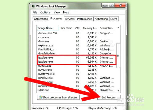 運(yùn)行Windows的“任務(wù)管理器”,并手動終止以下相關(guān)程序仍在后臺運(yùn)行:“谷歌工具欄的經(jīng)紀(jì)人”,“谷歌工具欄的通知”,和“Internet Explorer”。