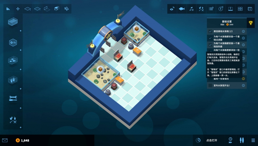《巨型水族館》是款策略向的模擬經(jīng)營游戲,玩家將作為館長來管理這家店,從場景布置到員工雇傭,都需要敬小慎微,當(dāng)然最重要的還是觀賞用的魚,游戲?qū)⑻峁┙o各位多種類型的魚,包括小丑魚、水母,甚至是鯊魚等等,豐富有趣的游戲元素。【游戲特點】