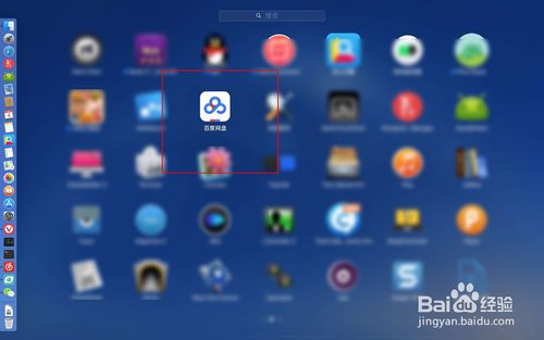 3、點擊dock上面的啟動臺圖標找到百度網(wǎng)盤圖標點擊一下啟動它,接著在圖二點擊下一步。