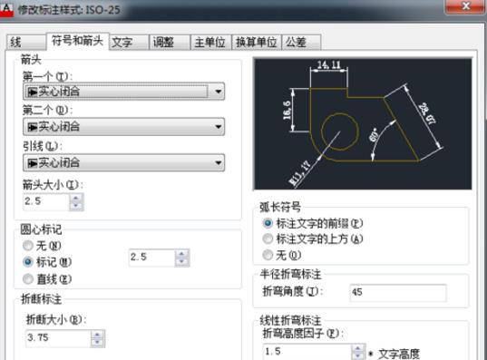 3.在’符號與箭頭‘中可看到‘箭頭大小’項。調整它就行了。