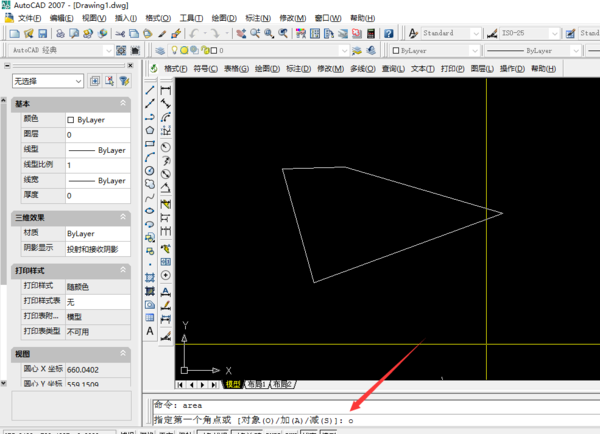 第一:在cad軟件中的命令行中輸入“area”命令,回車