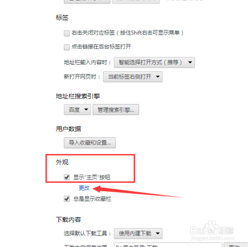 向下拉,找到顯示主頁勾選一下,并點擊更改。
