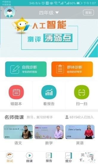 和博士app是一款打通中小學(xué)生“學(xué)—練—測(cè)”環(huán)節(jié)的人工智能在線教育學(xué)習(xí)產(chǎn)品。和博士app以群體診斷、個(gè)人診斷為核心功能,以發(fā)現(xiàn)問題、解決問題為主線,主要包括在線測(cè)試、名師微課、測(cè)評(píng)報(bào)告、提高成績等主版塊,涵蓋小學(xué)、初中、高中語數(shù)英等學(xué)科資源。和博士app由國內(nèi)教育測(cè)評(píng)領(lǐng)域頂尖專家和一線教育名師共同打造,采用國內(nèi)領(lǐng)先的認(rèn)知診斷技術(shù),并融合大數(shù)據(jù)分析、人工智能等先進(jìn)技術(shù),可精準(zhǔn)定位薄弱知識(shí)點(diǎn),推送精準(zhǔn)微課和習(xí)題,實(shí)現(xiàn)學(xué)生個(gè)性化學(xué)習(xí)、快速提高成績,輔助老師因材施教、差異化教學(xué),幫助家長掌握學(xué)情、輕松輔導(dǎo)。