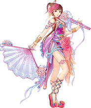 對舞蹈極有天分,舞姿曼妙、步步生花、渾然天成。原跟隨商團四處表演維持生活,后在一場表演中,因氣質(zhì)出眾,才貌過人,得到曹操喜愛,被曹操收為義女,長住京城,更在京城流傳著“百花姬”的封號。