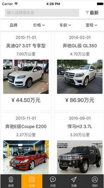推薦:為不同需求用戶整合車源,讓您在選車時有更多選擇;車源:數萬車源實時發(fā)布更新,保障車源讓您選車更輕松;