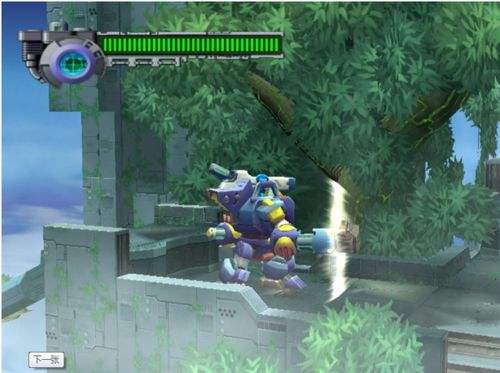 3、1的場景的下方可以發(fā)現(xiàn)有一位可以飛的機器人,讓Axl復(fù)制它的功能(其實不用的可以,但是用了更方便)。此場景過后可以發(fā)現(xiàn)又有一處跟一開始一樣是向下移動的卷軸。先別急著下去,往上跳吧,跳得沒得跳了就用那個機器人的功能飛向右邊,有個房間,里面有稀有金屬。