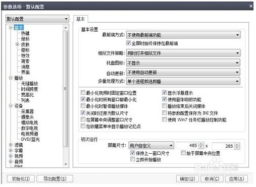 4、播放菜單旁邊,就是一個(gè)控制面板,這里有整個(gè)軟件的設(shè)置參數(shù),均衡器,視頻,字母,播放控制。均衡器這里有很多現(xiàn)成的模板,比如流行音樂,電影,新聞,當(dāng)然也可以自定設(shè)置成小波浪,記得要打勾啟用先。