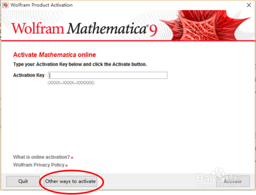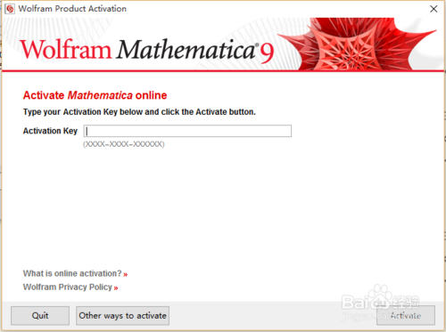 打開Mathematica 9應用程序,彈出Mathematica 9注冊界面