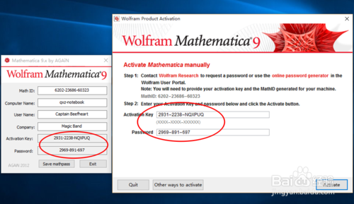 將Activation Key和Password復制到Mathematica 9注冊界面的Activation Key和Password欄