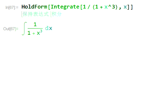 HoldForm[Integrate[1/(1 + x^3), x]]