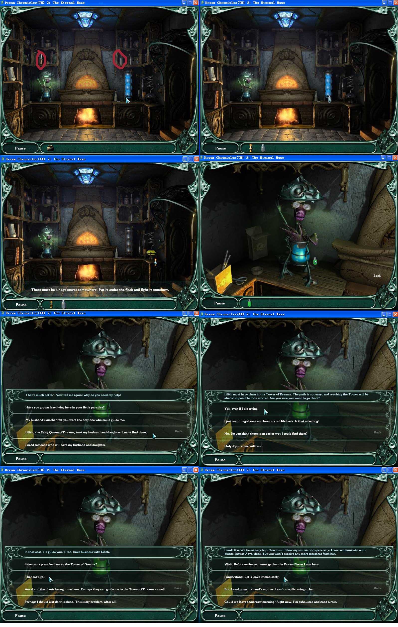 拿回營養(yǎng)液,放入球狀的蒸餾瓶里,在左上和右上的架子分別拿蠟燭和空瓶子。當營養(yǎng)液變黃色時,用空瓶子接住。然后放入最右邊的圓形燒杯里,用壁爐里的火點燃蠟燭,把酒精燈放在燒杯下面,再用蠟燭點燃酒精燈,等里面營養(yǎng)液變綠,再用空瓶子接住,給花換上。