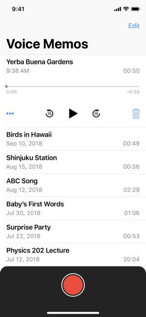使用語音備忘錄app可將iOS設(shè)備變成便攜式錄音機(jī)。這款語音備忘錄app富有現(xiàn)代感的全新設(shè)計(jì)使得錄制與分享個(gè)人備忘錄、家庭重要時(shí)刻以及授課內(nèi)容等變得更加得簡(jiǎn)單。語音備忘錄app中修剪、插入和替換等編輯工具可讓您微調(diào)錄音。有了iCloud支持,您可以隨時(shí)通過iOS設(shè)備利用語音備忘錄app錄制音頻,然后使用Mac來進(jìn)一步處理這些錄音。