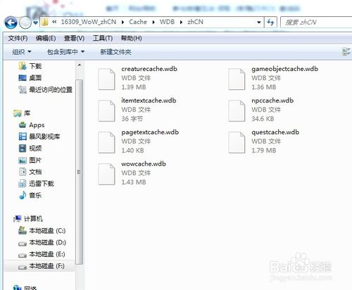 打開F:\World of Warcraft\Cache\WDB\zhCN文件夾,F(xiàn):指的是你WOW所在根目錄,如果你的WOW在別的盤,那就在別的盤打開,后面的路徑都是一樣的。