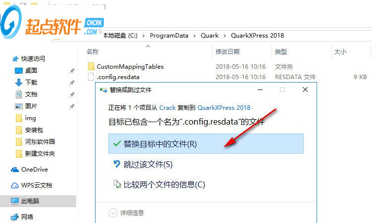1、quarkxpress 2018安裝完成后,先不要運行軟件,將Crack破解文件夾中的.config.resdata復制到C:\ProgramData\Quark\QuarkXPress 2018目錄中