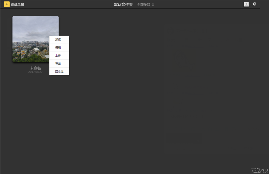 720云全景制作教程登錄軟件,單機(jī)左上角創(chuàng)建全景。