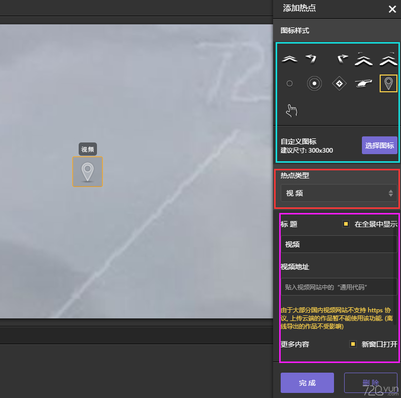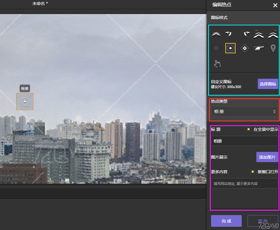 熱點(diǎn)可以在全景中添加各種不同類型的熱點(diǎn)。