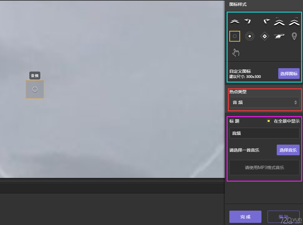 完成設(shè)置后拖拽熱點(diǎn)到合適的區(qū)域,點(diǎn)擊完成保存。