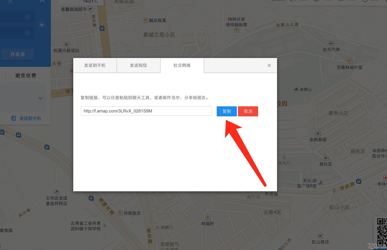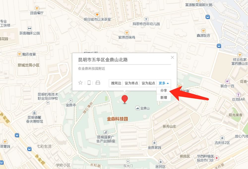 4.隨后點(diǎn)擊“更多”按鈕,在出現(xiàn)的菜單中再點(diǎn)擊“分享”按鈕,彈出一個(gè)窗口,復(fù)制里面的地址信息。