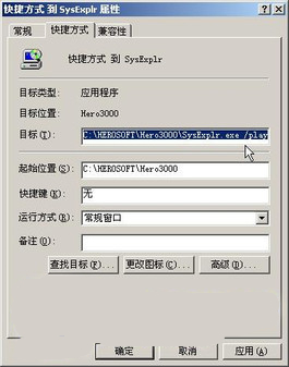 有時候當(dāng)放入一張CD、MP3或VCD光盤后,需要點擊啟動"豪杰豪杰超級解霸"\"超級音頻解霸"來播放CD或MP3光盤,點擊啟動"豪杰豪杰超級解霸"\"豪杰超級解霸"來播放VCD光盤,是不是覺得有些麻煩?請試著在桌面上為超級解霸的自動伺服器建立一個快捷方式,并加上一個參數(shù) /play(如"C:\HEROSOFT\Hero3000\SysExplr.exe /play",如圖6),再試著將光盤放入驅(qū)動器中,雙擊該快捷方式,怎么樣,系統(tǒng)會自動地識別出是什么格式的光盤,并會自動播放.