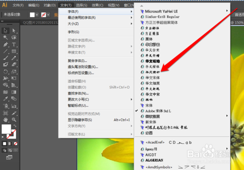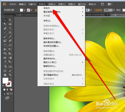照片文件添加成功后,點(diǎn)擊AI工具欄的文字選擇字體按鈕。