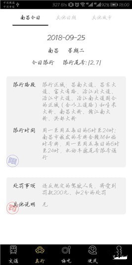 -限行:可查看南昌本地限行路段,限行時間段等,智慧南昌app還可以查看其它城市的限行情況,出行有一手,駕駛更方便