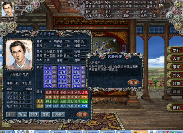 練就一身絕世神功,游戲的樂(lè)趣就去了大半,剩下的就是統(tǒng)一天下吧,所以這里就從簡(jiǎn)了,僅講幾個(gè)要點(diǎn):
