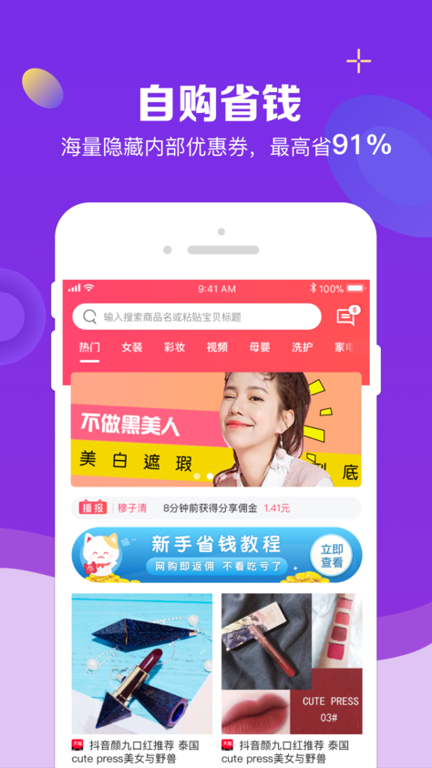 自購省錢:海量隱藏內(nèi)部優(yōu)惠券,最高省91%天天都是雙11:輕松購物,超多特惠,多用多省