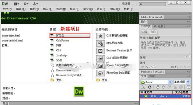 1、首先打開Dreamweaver8破解版,新建一個站點,再通過HTML在站點下創(chuàng)建一個新項目。