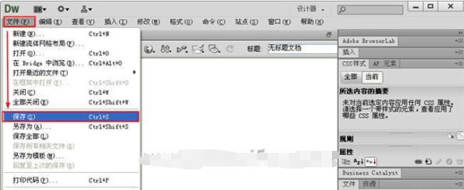 一張網(wǎng)頁設(shè)計好之后我們需要將它保存,這時我們只需要在“文件”菜單中點擊“保存”按鈕即可,或者你也可以直接按ctrl+S快捷鍵。