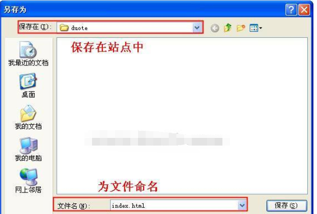 2、將新建的html項目進行保存,新建—保存,將文件保存在站點中,并命名為“index”。這里提醒一下在插入swf之前,建議先對文件進行保存,否則將無法順利進行插入。