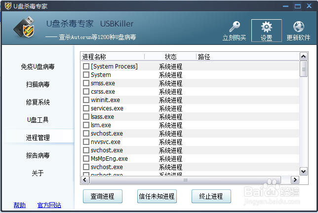 5.進程管理: 讓你迅速辨別并終止系統(tǒng)中的可疑程序;