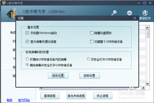 當插入U盤時,可以自動檢測并清除U盤內(nèi)的autorun病毒,杜絕病毒通過U盤感染電腦;