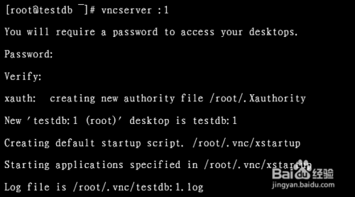 以上命令執(zhí)行的過程中,因為是第一次執(zhí)行,需要輸入密碼,這個密碼被加密保存在用戶主目錄下的.vnc子目錄(/root/.vnc/passwd)中;同時在用戶主目錄下的.vnc子目錄中為用戶自動建立xstartup配置文件(/root/.vnc/xstartup),在每次啟動VND服務(wù)時,都會 讀取該文件中的配置信息。