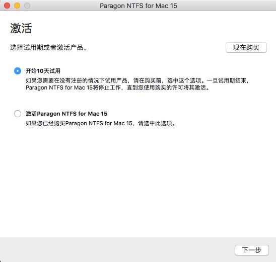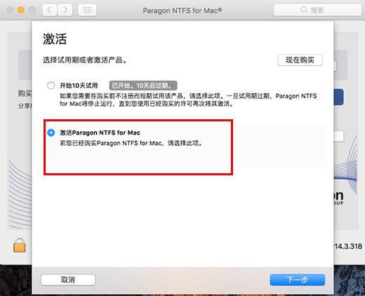 在若已經(jīng)獲取激活密鑰,在安裝向?qū)Ы缑嬷锌梢灾苯狱c(diǎn)擊“激活Paragon NTFS for Mac”,然后進(jìn)行下一步操作。