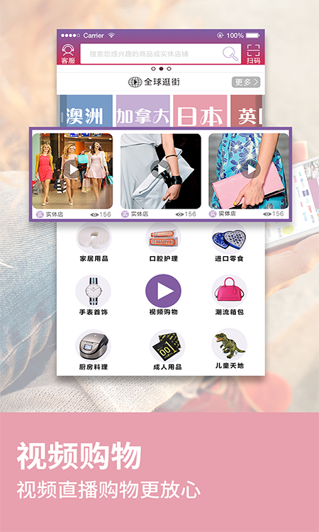 顛覆購物模式:“海外實體店+視頻直播購物”的商業(yè)模式,讓國內買家和海外店家直接“面對面”交易,幫買家解決了以往要親身去到海外購物或找人代購的麻煩。【海外實體店直播購物】:使用微視頻、點播、直播的形式,讓買賣雙方“面對面”交易,眼見為實,購物放心!