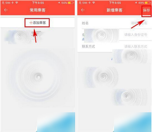 2)接著點(diǎn)擊【+添加乘客】,編輯信息后點(diǎn)擊右上角【保存】。(如下圖)