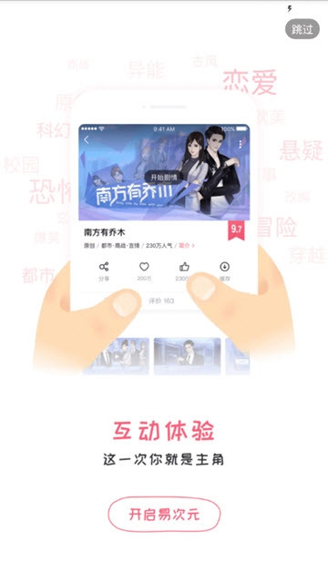 易次元是網(wǎng)易出品的互動(dòng)閱讀平臺(tái)。海量互動(dòng)文字作品,顛覆傳統(tǒng)小說(shuō)、漫畫閱讀方式,精美畫風(fēng)、多支線多結(jié)局浸入式劇情,給你全新閱讀體驗(yàn)。