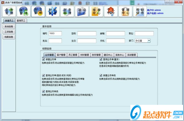 同樣分為新建員工和查詢員工兩個板塊。一個員工賬號包括系統(tǒng)信息、工資信息、檔案信息,根據(jù)員工的ID查詢基本的信息。
