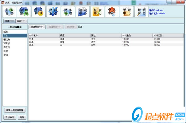 分為新建材料和查詢材料兩個內(nèi)容。在新建時根據(jù)種類選擇材料,選擇材料的名稱和屬性,并根據(jù)新彈出來的窗口填寫材料的具體信息,確定后方可完成材料的新建。