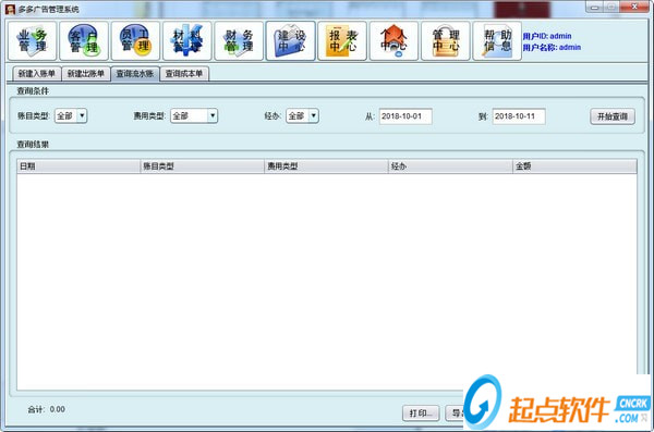 分為新建入賬單、新建出賬單、查詢流水賬、查詢成本單四個功能。新建入賬單和新建出賬單功能類似;而流水賬根據(jù)賬目類型也分為入賬和出賬兩種,可以選擇手工輸入或者系統(tǒng)導(dǎo)入;成本單分為已入賬和未入賬兩種。