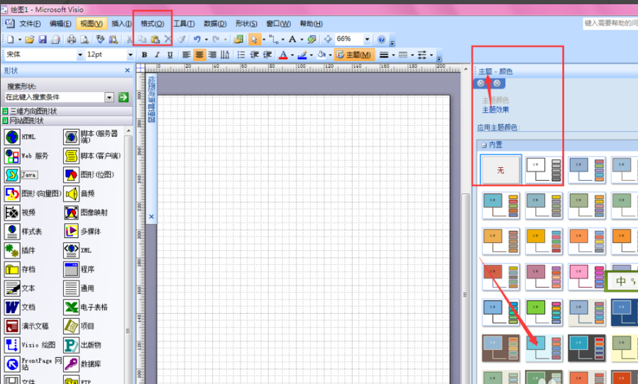 選擇一個(gè)形狀,然后在【主題】的【顏色】和【效果】中調(diào)到合適的。