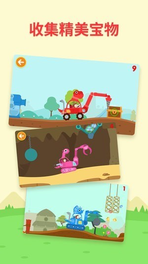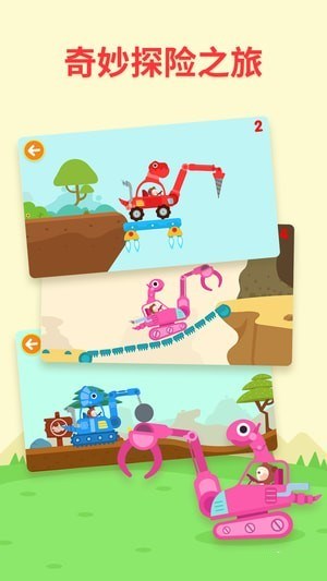 【精心制作】多多恐龍車游戲關(guān)卡豐富,三款為小朋友精心打造的恐龍機(jī)械車都各具特色;