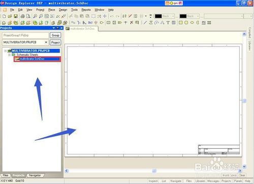 下面我們將原理圖圖紙?zhí)砑拥巾?xiàng)目中,鼠標(biāo)右鍵單擊Multivibrator.SchDoc,選擇Add to Project。原理圖圖紙將連接到項(xiàng)目文件,如下圖所示