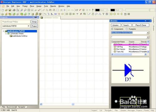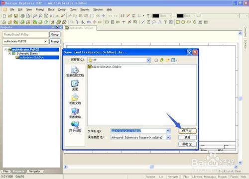 點(diǎn)擊File?Save As可以重命名保存為Multivibrator.SchDoc,點(diǎn)擊Save按鈕。這時(shí)空白原理圖打開,工作區(qū)變成了原理圖環(huán)境下的設(shè)置選項(xiàng)。