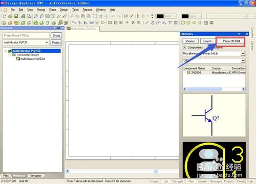所有準(zhǔn)備工作做好了,我們現(xiàn)在開始繪制一張?jiān)韴D,先找元件庫(kù)文件:以2N3904為例