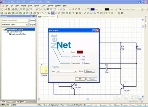 可以自己重命名點(diǎn)擊File?Save Project As鍵入路徑和文件名Multivibrator.PrjPCB,創(chuàng)建成功,如下圖所示