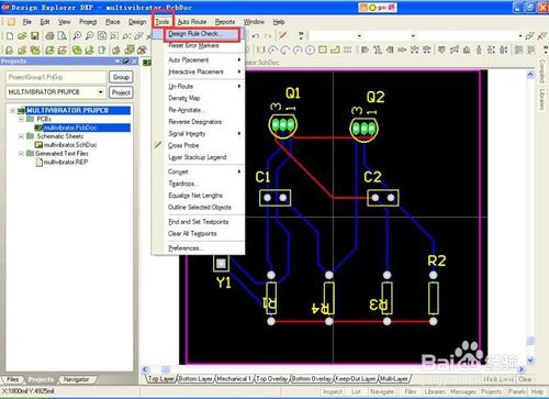 5 、提供了強(qiáng)大的查錯(cuò)功能。原理圖中的 ERC (電氣法則檢查)工具和 PCB 的 DRC (設(shè)計(jì)規(guī)則檢查)工具能幫助設(shè)計(jì)者更快地查出和改正錯(cuò)誤。
