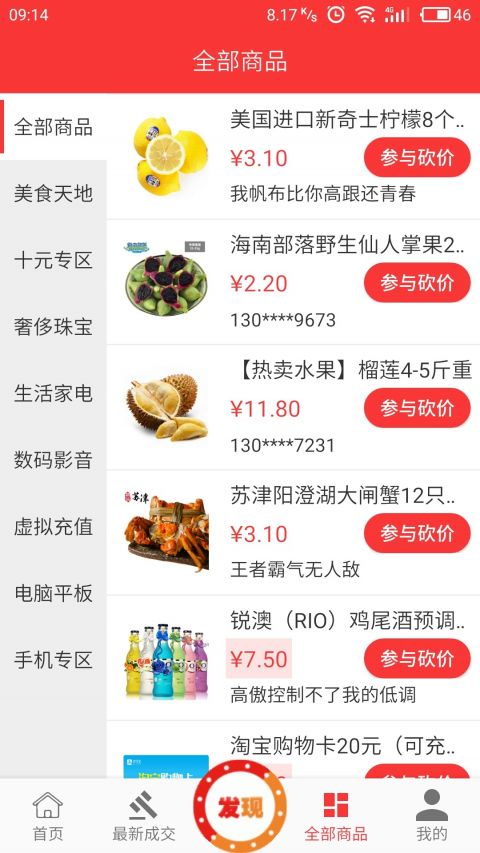 天天砍價(jià)低價(jià)0.1元成交天天砍價(jià)通過砍價(jià)活動(dòng),以砍價(jià)的方式,讓用戶輕松獲得夢(mèng)想中的產(chǎn)品,和好友一起砍價(jià)更刺激!底價(jià)購物,低至0.1元起