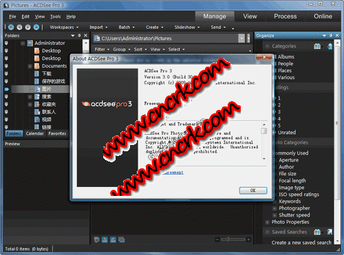 ACDSee Pro V5.2.157 英文官方安裝版 acdsee 是目前最流行的數(shù)字圖象處理軟件,它能廣泛應用于圖片的獲取、管理、瀏覽、優(yōu)化甚至和他人的分享!使用 acdsee,你可以從數(shù)碼相機和掃描儀高效獲取圖片,并進行便捷的查找、組織和預覽。超過 50 種常用多媒體格式被一網(wǎng)打盡!作為最重量級看圖軟件,它能快速、高質量顯示您的圖片,再配以內(nèi)置的音頻播放器,我們就可以享用它播放出來的精彩幻燈片了。acdsee 還能處理如 mpeg 之類常用的視頻文件。